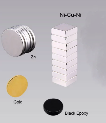| NdFeB Surface coating: | Zinc plated | Ni-Cu-Ni plated | Silver plated | Nickel plated | Aurum plated | Epoxy coated | Phosphatsing | Parylene | other coating | |